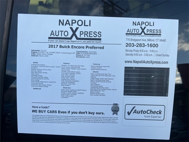 Black Cherry Metallic 2017 Buick Encore Automatic ECOTEC 1.4L I4 SMPI DOHC Turbocharged VVT AWD