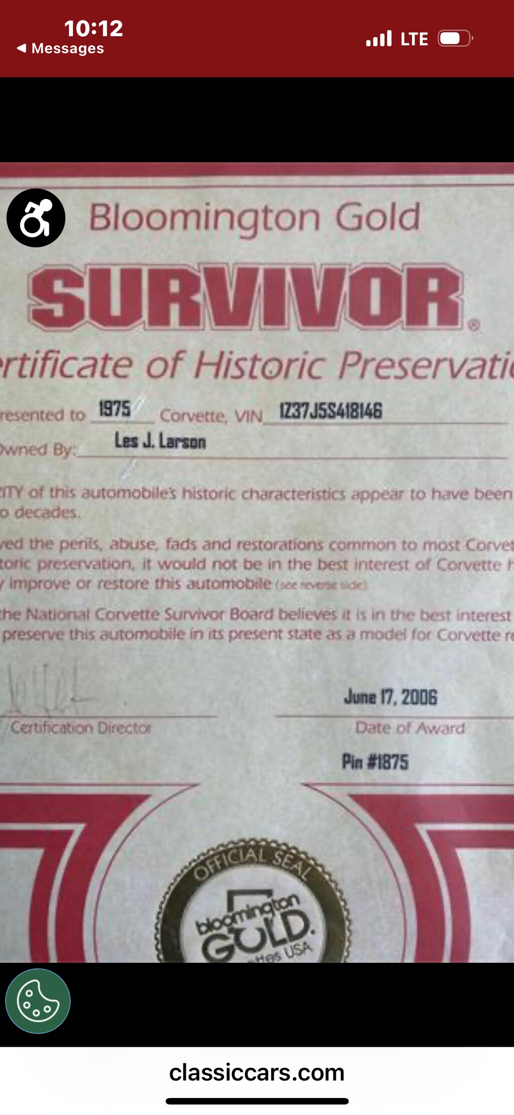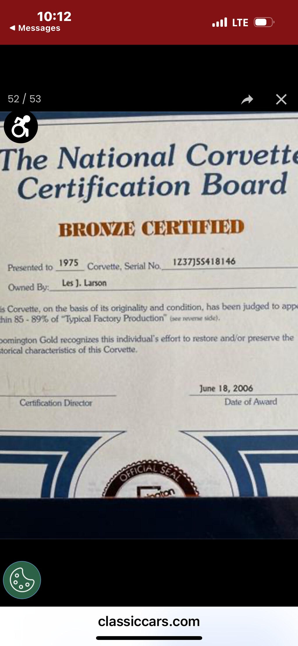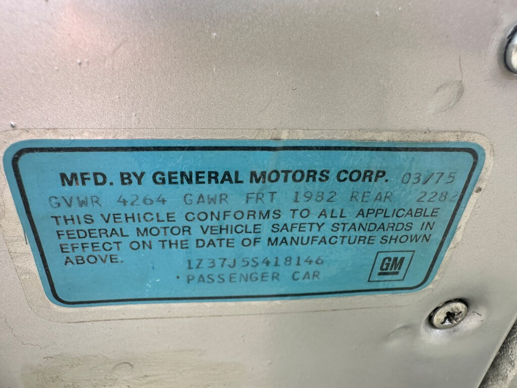 1- CHEVROLET Z-CORVETTE 37-COUPE J-L48 350V8 5-1975 S-ST LOUIS PLANT 418146 -SEQ#