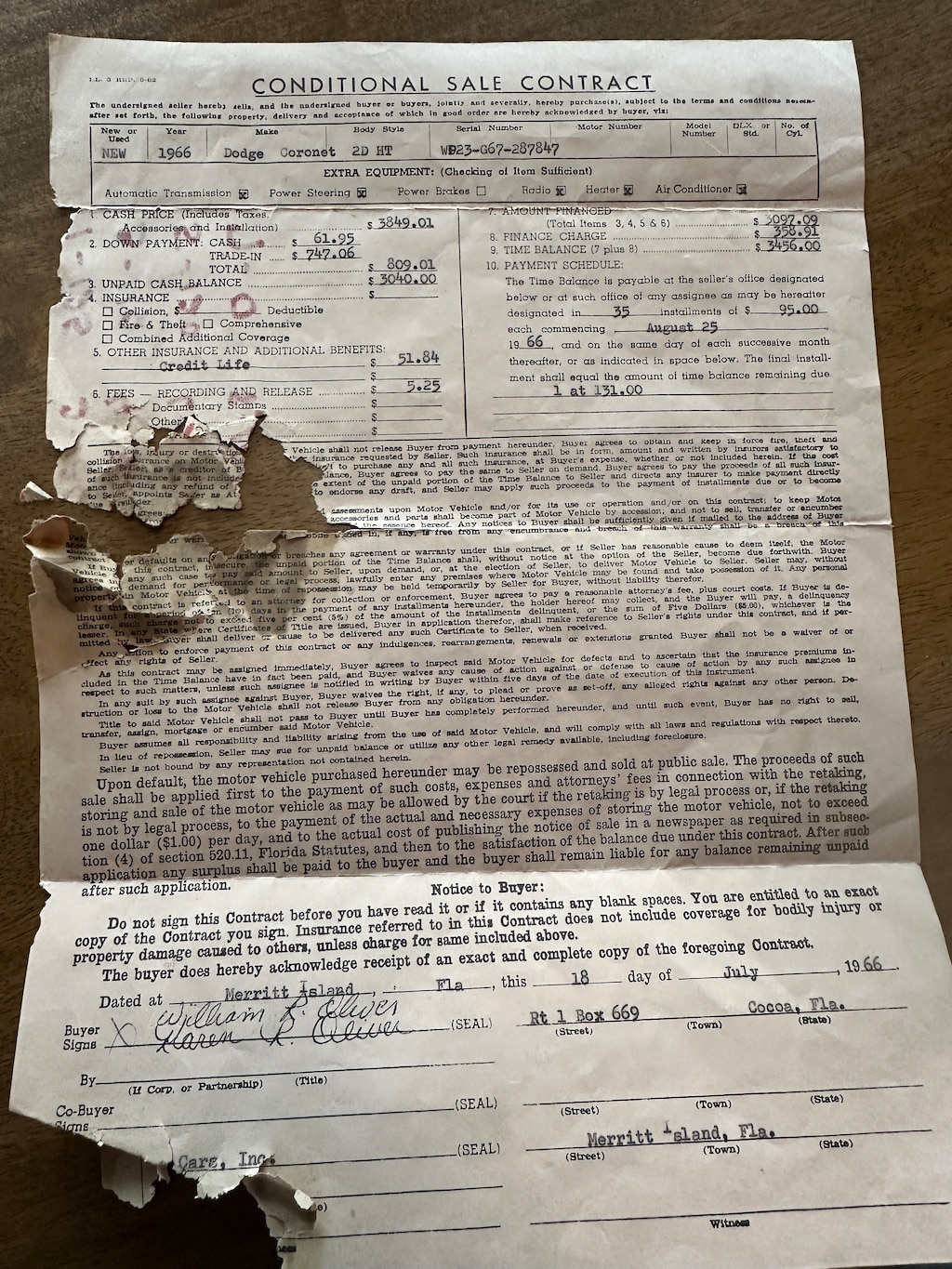 THIS CORONET 500 WAS BOUGHT BRAND NEW AT CAPE CARS INC IN MERRITT ISLAND FLORIDA JULY 1966.