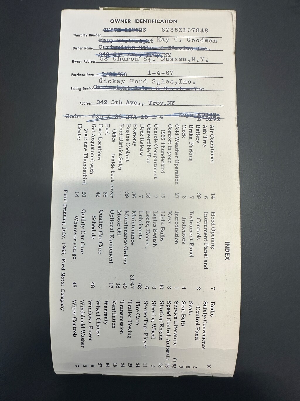 THIS VERY NICE 1966 THUNDERBIRD WAS BOUGHT NEW ON 1/4/1967 AT HICKERY FORD IN TROY NEW YORK.