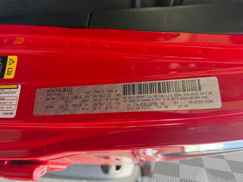 ENGINE: 3.6L V6 24V VVT UPG I W/ESS, TRANSMISSION: 8-SPEED AUTOMATIC (850RE), QUICK ORDER PACKAGE 24S SPORT S, 3.45 REAR AXLE RATIO, WHEELS: 17 X 7.5 TECH SILVER ALUMINUM, TIRES: 245/75R17 ALL-SEASON, FIRECRACKER RED CLEARCOAT, BLACK, CLOTH LOW-BACK BUCKET SEATS, COLD WEATHER GROUP, CONVENIENCE GROUP, SAFETY GROUP, TECHNOLOGY GROUP, PREMIUM BLACK SUNRIDER SOFT TOP, SIDE STEPS, LED HEADLAMP & FOG LAMP GROUP, RADIO: UCONNECT 4 W/7 DISPLAY, SIRIUSXM SATELLITE RADIO, MOPAR ALL-WEATHER FLOOR MATS, GOOGLE ANDROID AUTO, MANUFACTURER'S STATEMENT OF ORIGIN