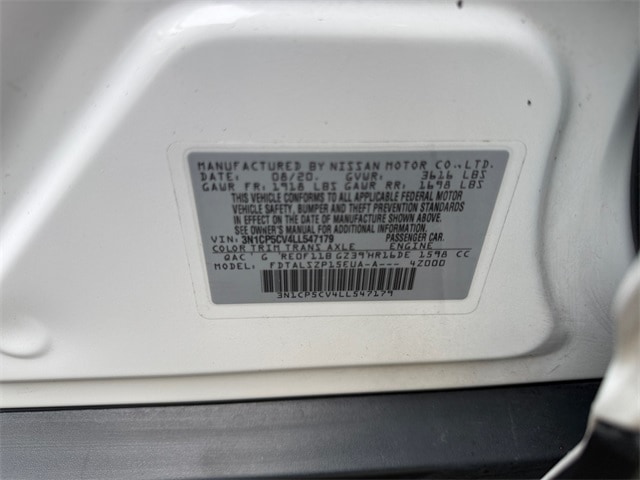 Aspen White Tricoat 2020 Nissan Kicks Automatic 1.6L 4-Cylinder DOHC 16V FWD