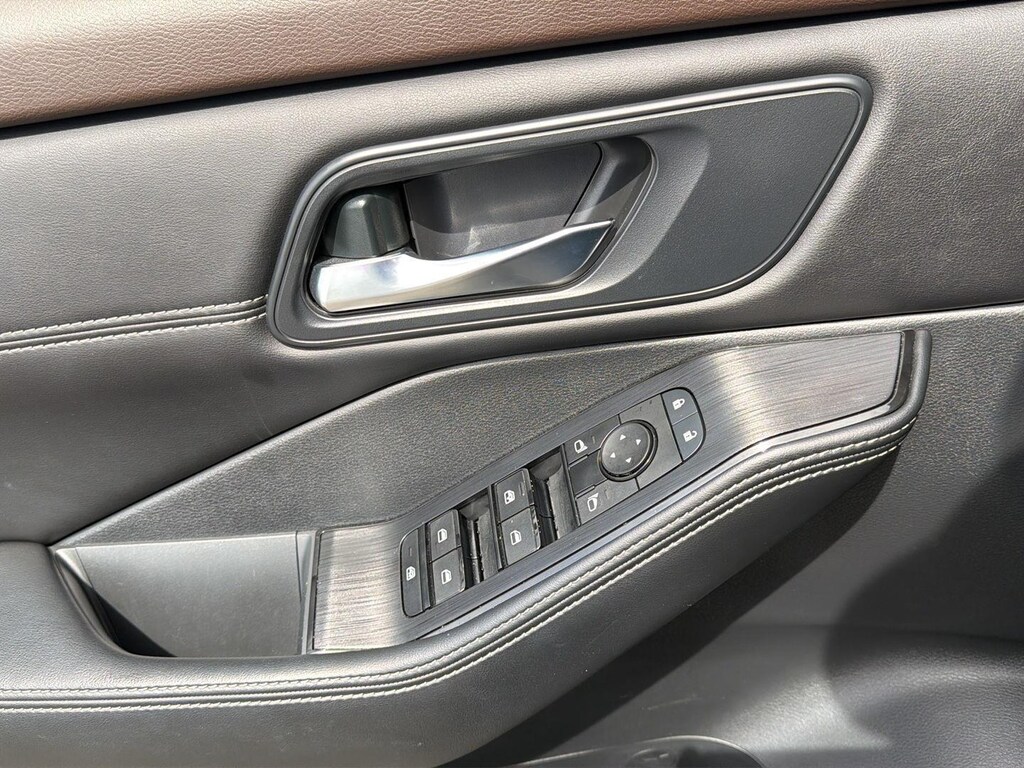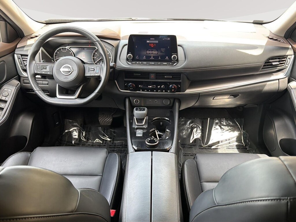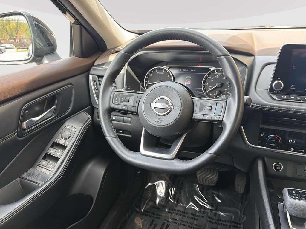 - Includes leatherette seats, heated front seats, heated leather-wrapped steering wheel, rear door sunshades, power liftgate, power panoramic moonroof, roof rails, and vehicle security system.