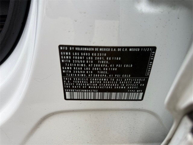 White 2022 Volkswagen Tiguan Automatic 2.0L TSI DOHC AWD